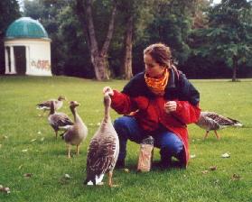 Sie mögen uns. Natürlich. Wie unterrichten ja auch die tollsten Sachen. Pirouetten, Slalom durch die Beine laufen während wir vorwärts gehen, Gänse sind klasse. Man könnte denken, dass unser Arbeit gansheitlich ist, schwanheitlich ist sie oft auch, und entheitlich (obwohl das schon sehr komisch klingt, hat auch nur 0 Googletreffer). Etwa 80 Graugänse, 29  Kanadagänse, eine Streifengans, 3 Enten und eine Krähe auf unserer Lieblingsgänsedressurwiese (0 Googletreffer) und sie sehen schon gans neugierig aus. Ein gerade nicht mehr vierbeiniger Homo Sapiens (ganz doll niedlich Alter) verfolgt eine Graugans. "Gans, gans, gans, komm, komm!" Alle anwesenden Elche fühlen sich nicht vorhanden. Die Gans läuft im Kreis. Klein Homo Sapiens auch. Gans schnell. Ich gehe der Gans aus dem Weg, gans. Ups! Gans drin, in Gänsefäkalien. Gans schlecht. H.S. läuft an mir vorbei. Neue Zielgans (0 Googletreffer). Erste Gans gans gelassen. Habe heute meinen dadaistischen Tag. Gans doll. Dann aber gans. Nun folgend, das mir liebste unter meinen selbstverfassten Gedichten, Gänseversion, 0 Googletreffer: