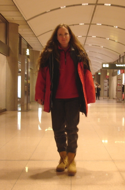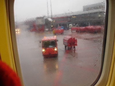 Arbeit im letzten Moment vollbracht. Hochgeschwindigkeitsverabschieden. Vom Chef-Chauffeur im Höchsttempo zurück zum Flughafen bugsiert werden – in 75 Minuten... (ob das am netten Auto lag...)? Sehr, sehr schnelles Rennen, in allerletzter Sekunde den anderen Passagieren hinterher hechten. Völlig zerzaust, Wertsachen, Kompass und sonstigen Kleinkram noch vom Durchleuchtetwerden in den Händen, Rucksack quer überm Rücken, offene Stiefel – aber an Bord des letzten Fliegers für heute! Geschafft!  Am Flughafen von Andreas im Empfang genommen werden. Wieder ein toller, aufregender und lehrreicher Tag zu Ende gegangen. Und nein, Stuttgart habe ich wieder nicht gesehen.