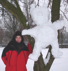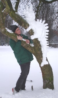 Bleibt noch zu erwähnen, dass wir teilweise wahre Zuschauerkreise hatten - lächelnd, lachend, begeistert, mit den freundlichsten Kommentaren. Während sich inzwischen immer mehr Spaziergänger mit unseren Schneewerken fotografieren ließen, teilte uns eine Dame hoffnungsvoll mit, dass es ja noch viele weitere Bäume im Park gibt.