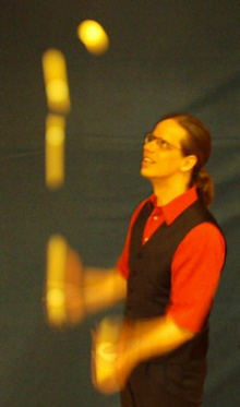 Rezitation der Eulerschen Zahl fehlerfrei aus dem Gedächtnis beim gleichzeitigen, kontinuierlichen Jonglieren von 5 Bällen