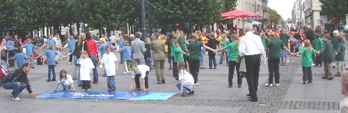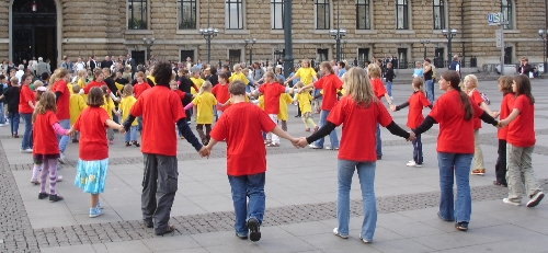 Mit dabei: Die Hamburger Sport- und Bildungssenatorin, viele rasend wichtig aussehende Menschen (Grüße), Hamburger Olympiasieger, die Presse und, natürlich, wir. Das “wir” sind in diesem Falle auch die Kinder und Jugendlichen der von uns trainierten Sportgruppe, die, während sie vom Balkon des Rathauses fotographiert wurden, dabei halfen, die olympischen Ringe zu bilden.
