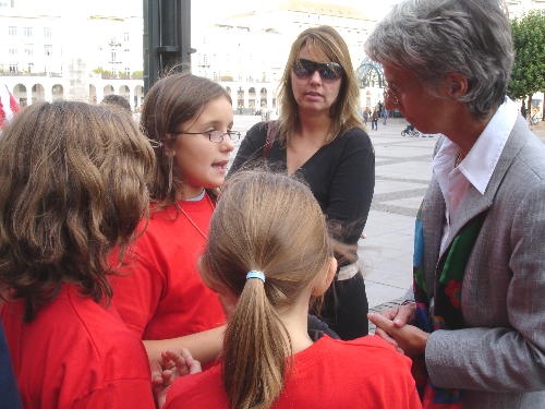 Beobachtet von einer uns unbekannten Dame (Security?), nutzten einige “unserer” Kinder die Gelegenheit, sich noch etwas mit der Senatorin Frau Dinges-Dierig auszutauschen.
